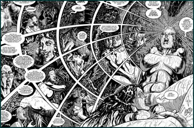 Further erotic works were published in the Spanish monthly magazine Eros Comix (Dolmen Verlag/Label). His series "Aguas Calientes" was also published by Eros Comix (Fantagraphics/USA) and Librepress (Holland). This series is again about mythological legends. This time around the roman cult of the "Diosa Madre" and the black virgin. Aguas Calientes has grown to 24 chapters, which have been published in the Spanish monthly magazine Eros Comix (numbers 39 to 62) from 2004 to 2006 and have been compiled in a collection in 2008.